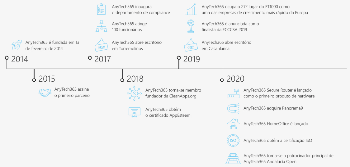 Hoje, somos aproximadamente 400 funcionários e nossos especialistas em TI nativos estão oferecendo suporte técnico em mais de 15 idiomas. Em 2019, Financial Times classificou AnyTech365 como no. 27 no top 1000 das empresas de crescimento mais rápido na Europa.